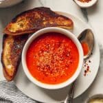 - Serve: Ladle the hot soup into bowls. Garnish with the remaining coconut milk and a pinch of red pepper flakes. Optionally, sprinkle vegan Parmesan cheese on top. This soup pairs beautifully with a vegan grilled cheese sandwich.