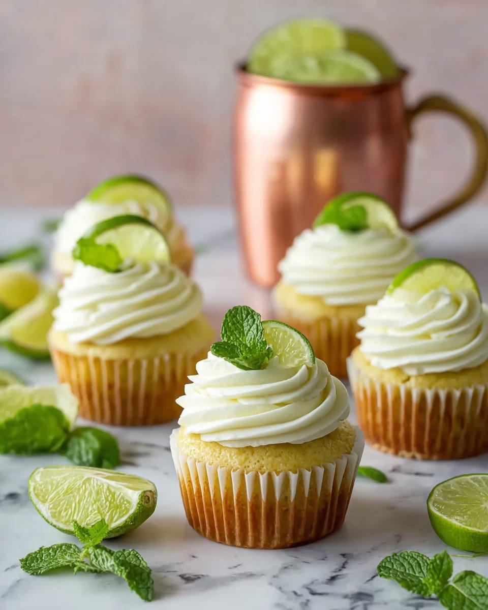 For birthdays or special gatherings, I love arranging these cupcakes in a festive cocktail glass platter with mini Moscow Mule mugs as decor. Adding a small lime wedge or a tiny cocktail umbrella to each cupcake makes them look playful and party-ready. Trust me, guests get a kick out of that presentation as much as the flavor!