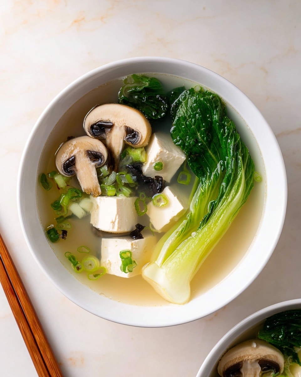 This Gluten-Free Miso Soup is a comforting and nourishing Japanese-inspired broth made with gluten-free dashi, a medley of fresh mushrooms, tender baby bok choy, and silken tofu. Enhanced with nutrient-rich wakame seaweed and a delicate drizzle of sesame oil, this soup is perfect for a light meal or an appetizer that is both flavorful and easy to prepare.