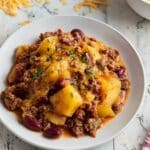 Absolutely! You can bake the casserole in a preheated 350°F (175°C) oven for about 1 to 1 ½ hours covered, until the potatoes are tender and the beef is cooked through. Just be sure to stir halfway to distribute heat evenly, and add the cheese topping in the last 10 minutes.
