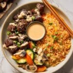 This Hibachi Steak Bowls recipe features tender top sirloin steak marinated in a savory blend of mirin, garlic, and ginger, then seared to perfection and paired with sautéed carrots, zucchini, and mushrooms. Served over fried rice and topped with a drizzle of creamy Yum Yum Sauce, this dish delivers a delicious, restaurant-style meal that’s quick and easy to make at home.
