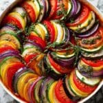 Keywords: Ratatouille, French vegetable stew, baked ratatouille, vegetarian recipe, Mediterranean vegetables