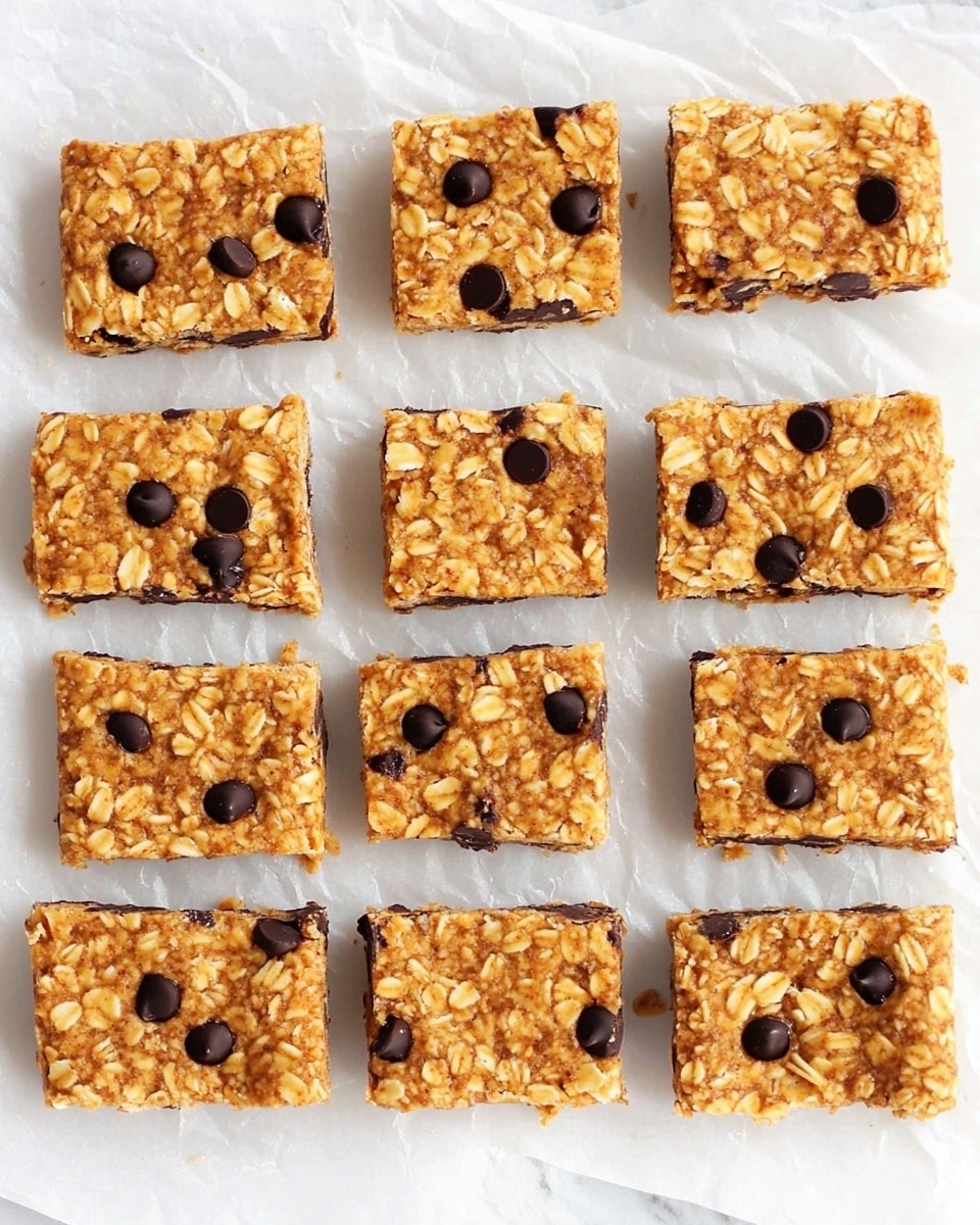 Keywords: homemade granola bars, peanut butter bars, healthy snack, no-bake granola bars, easy granola bars, chocolate chip granola bars