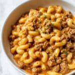 Keywords: Hamburger Helper, homemade, ground beef dinner, cheesy pasta, quick skillet meal