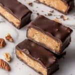 I’ve frozen these bars wrapped tightly in plastic wrap and then placed in a zip-lock bag for up to two months. Thaw in the fridge overnight before eating. This way, you can enjoy homemade Snickers anytime without rushing the process.