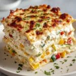 This Loaded Veggie White Lasagna is a creamy, flavorful vegetarian dish featuring layers of tender lasagna noodles, a rich homemade white sauce, sautéed mixed vegetables including bell peppers, zucchini, and spinach, and a blend of ricotta, Parmesan, and mozzarella cheeses baked to perfection. It’s a perfect comforting meal that is wholesome, satisfying, and packed with vegetable goodness.