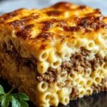 This Mac and Cheese Meatloaf Casserole is a comforting, hearty dish combining the flavors of classic meatloaf with creamy mac and cheese, baked together for a satisfying one-pan meal. Ground beef is seasoned with onion soup mix and spices, layered with elbow macaroni and sharp cheddar cheese, then baked with a tangy BBQ and ketchup sauce for a perfect balance of savory and sweet.