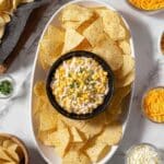 - Serve and garnish: Before serving, transfer the dip to a serving bowl and garnish with optional chopped cilantro, additional sliced green onions, cotija cheese, and a pinch of chili powder for extra flavor and presentation.