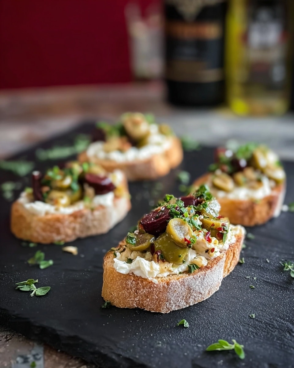 The ingredients for this Mixed Olive and Whipped Feta Crostini Recipe work together like a dream. The olives bring a deep, savory punch while the whipped feta adds that smooth, rich texture, perfect for spreading on toasted baguette slices. Keep an eye out for good-quality olives and fresh basil — they really take this from ordinary to yum.