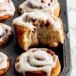 Frozen cinnamon roll biscuits are such a lifesaver. I freeze them either before baking (slice and freeze on a baking sheet first, then transfer to bags) or after baking and cooling. When you’re ready, bake from frozen with an extra few minutes added to the baking time, or reheat baked ones straight from the freezer. Either way, they’re wonderfully fresh tasting!