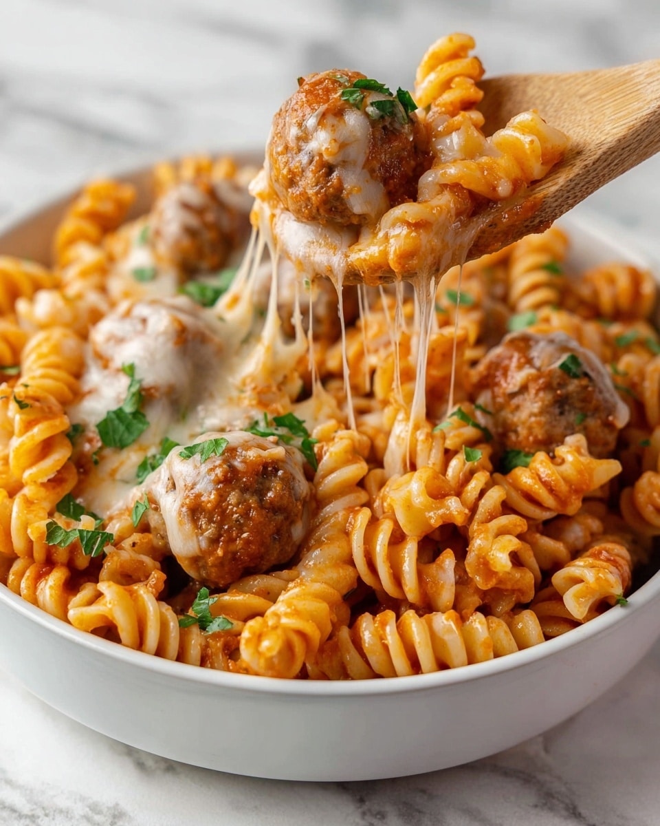 This recipe is a lifesaver when you want something comforting, cheesy, and just downright satisfying without spending hours in the kitchen. I love making this on busy nights or even as a meal prep option because it scales easily and still tastes amazing the next day. Plus, it’s a total crowd-pleaser — pasta, meatballs, sauce, and gooey cheese all in one pot? Yes, please!