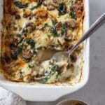 Keywords: overnight croissant breakfast bake, breakfast casserole, croissant casserole, baked egg dish, mushroom spinach bake, brunch recipe