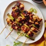 Freezing works, too! I recommend arranging the skewers on a baking sheet lined with parchment to freeze individually first, then transferring them to a freezer bag. When you’re ready to eat, thaw overnight in the fridge and reheat with a quick sear or in the oven.
