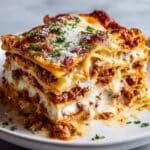 For a special occasion, I’ve served this lasagna in individual ramekins, which makes it feel fancy but still homey. You can also add a sprinkle of crispy bacon bits and microgreens on top for a restaurant-worthy presentation that impresses guests without added complexity.