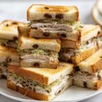 Pear Tea Sandwiches are a delightful, elegant snack perfect for afternoon tea or light gatherings. These sandwiches combine the sweet, nutty flavor of honey-pecan cream cheese with the juicy freshness of ripe pears, crunchy pecans, and crisp alfalfa sprouts, all layered on lightly toasted cinnamon-raisin bread. The subtle sweetness and varied textures make these sandwiches a sophisticated treat that’s easy to prepare and sure to impress.