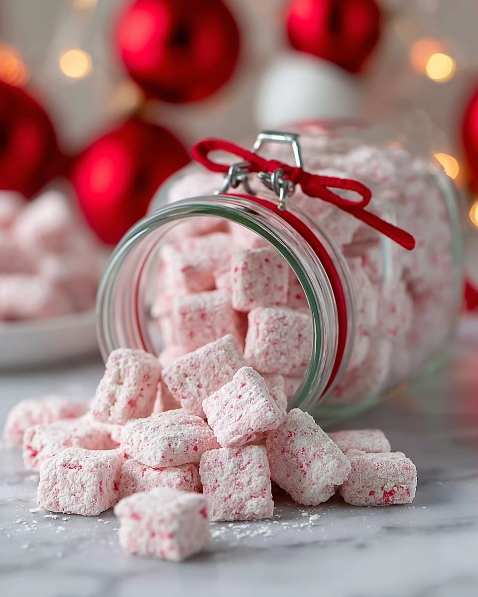 When gifting, I like to package the Peppermint Bark Puppy Chow Recipe in clear cellophane bags tied with red and white twine—it looks adorable and festive. For parties, serving it in small mason jars or colorful holiday bowls invites guests to snack freely and keeps things tidy.