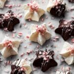 These Peppermint Meringues with Chocolate Drizzle are a festive and light treat perfect for the holiday season. Crispy on the outside and melt-in-your-mouth on the inside, the meringues are flavored with refreshing peppermint extract and topped with a delicious drizzle of melted white and semisweet chocolate, finished with a sprinkle of crushed candy canes for a delightful crunch and extra minty flavor.