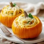 Keywords: Pumpkin Alfredo, stuffed pumpkins, fall pasta recipe, creamy pumpkin pasta, festive Halloween recipe, pumpkin cauldrons