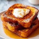 Pumpkin French Toast is a cozy fall-inspired breakfast recipe that combines thick slices of brioche or challah bread soaked in a spiced pumpkin custard, then pan-fried to golden perfection. It’s a flavorful way to enjoy seasonal pumpkin with warm spices like cinnamon, nutmeg, and ginger, topped with maple syrup and optional nuts for extra crunch. Perfect for a comforting and festive morning treat.