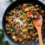 Yes! This Sausage and Veggie Skillet with Parmesan Recipe is naturally gluten-free as long as you choose sausage and seasonings without gluten-containing additives. Always check labels to be sure — especially on sausage and spice blends.