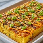 This Savory Salmon Sushi Bake is a deliciously easy and comforting twist on traditional sushi, perfect for a crowd or a family dinner. Featuring layers of seasoned sushi rice, flavorful salmon, creamy cream cheese, and a spicy mayo drizzle, it’s topped with crunchy furikake, green onions, and sesame seeds for added texture and umami. Baked to perfection, this dish delivers all the great sushi flavors in a warm, shareable casserole format.