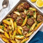 Sheet Pan Biftekia with Lemony Potato Wedges Recipe