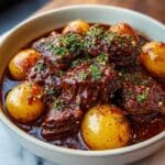 This recipe really stands alone with the beef and potatoes, but I like to serve it alongside a crisp green salad or roasted green beans to add a fresh crunch. A crusty loaf of bread is great too—you’ll want something perfect for mopping up all that garlicky butter sauce!