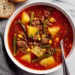 Keywords: slow cooker soup, beef vegetable soup, comfort food, easy dinner, hearty soup, crockpot recipe, ground beef soup