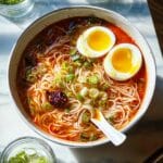For small dinner parties, serve the soup in pretty ramen bowls topped with artfully sliced eggs and microgreens. I once arranged small individual bowls with toppings on the side so guests could customize their own bowls—fun and interactive! A drizzle of different chili oils (like sesame or smoked chili) adds a colorful and tasty twist too.