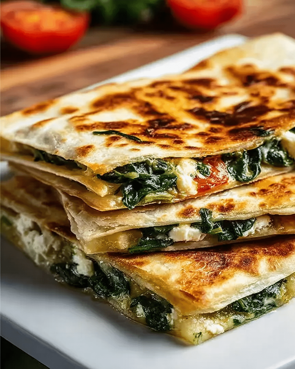 Keywords: Spinach Quesadilla, Feta Cheese Quesadilla, Vegetarian Quesadilla, Mediterranean Quesadilla, Quick Lunch Recipe