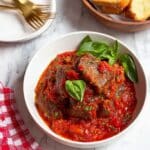 If you want to freeze the Steak Pizzaiola with Tomato Sauce Recipe, portion it into freezer-safe containers. It holds up nicely frozen for about 2 months. When freezing, I skip adding fresh basil until reheating to keep it tasting fresh.