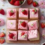 I like to top my cake with fresh strawberry slices, a sprinkle of crushed freeze-dried strawberries for that beautiful burst of color, and a few edible flowers if I’m feeling fancy. The fresh fruit adds a lovely texture contrast and elevates the look, making it party-ready instantly.