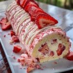 This delightful Strawberry Shortcake Sushi Recipe is a creative twist on the classic dessert, featuring a light strawberry cake rolled with fluffy whipped cream filling and topped with fresh strawberries, white chocolate drizzle, and optional crushed freeze-dried strawberries. It’s perfect for parties or a fun dessert that mimics sushi presentation.