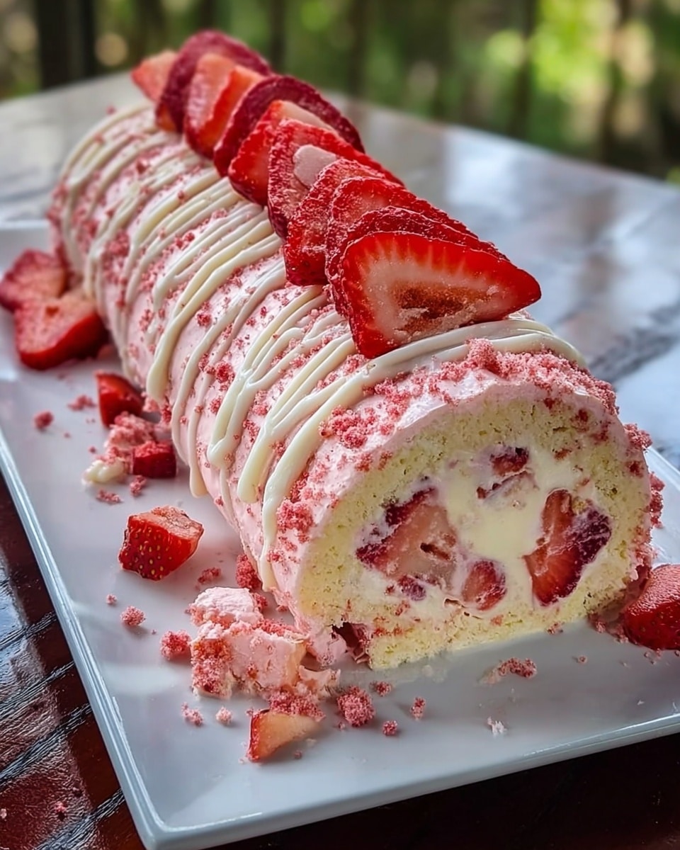 - Chocolate Cake Roll: Use a chocolate cake mix instead of strawberry for a rich, indulgent take — the white chocolate drizzle pops beautifully against dark cake.