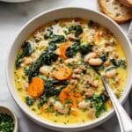This soup pairs beautifully with crusty Italian bread or a warm baguette to soak up the broth. Sometimes I serve it alongside a crisp green salad with lemon vinaigrette to balance the savory richness. It’s also fantastic with garlic breadsticks if you’re in the mood for extra indulgence.