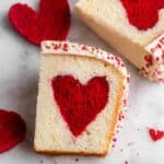 Keywords: Valentine’s cake, surprise inside cake, heart cake, pound cake, festive cake, Valentine’s Day dessert