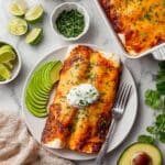 - Assemble Enchiladas: Spoon the filling evenly onto each tortilla, roll them up tightly, and place them seam-side down in a greased 9×13 inch baking dish.