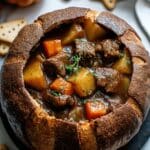 - Serve: Ladle the hot stew into hollowed-out bread bowls if desired, or serve in deep bowls with crusty bread on the side for dipping.